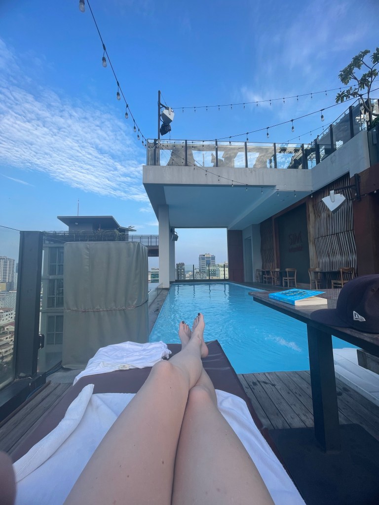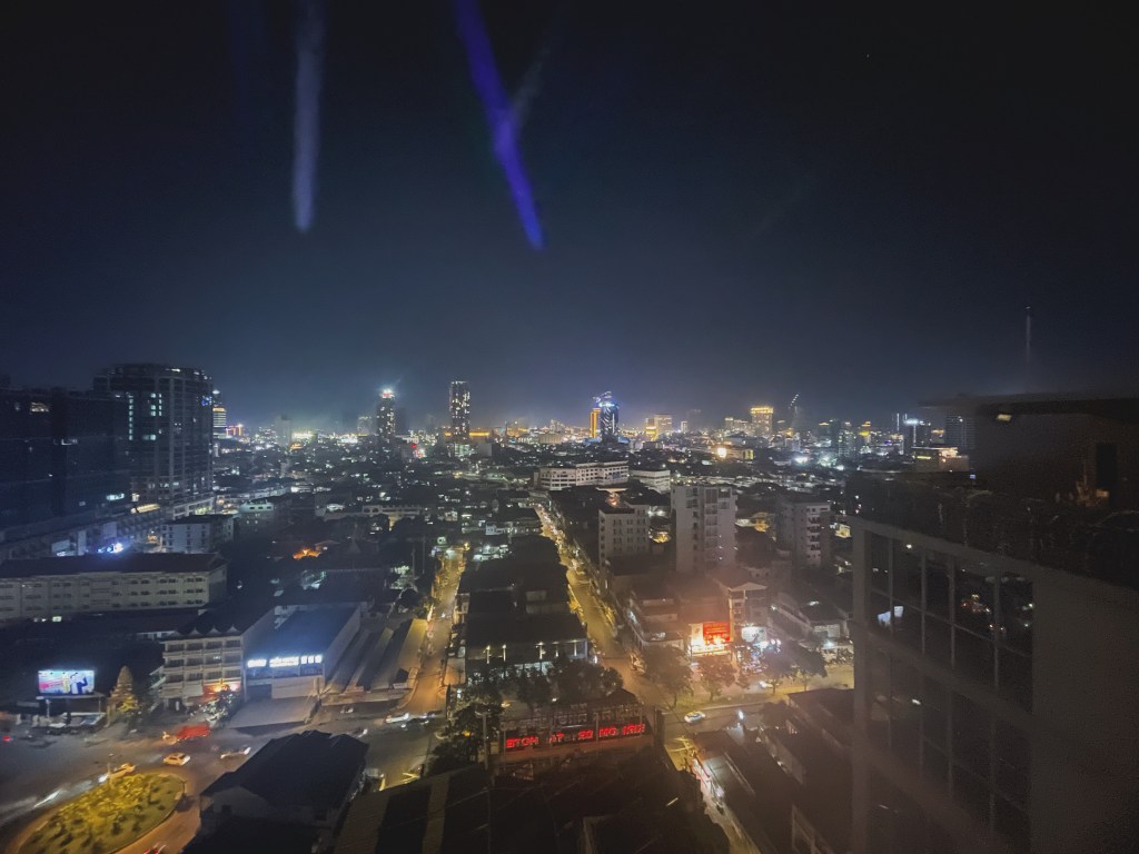 I finished my last night in Phnom Penh on the rooftop of the hotel at their Sky Bar and Pub. I had a cocktail and a beer as I enjoyed the lights of the city. I was able to see the Central Market, the air ducts in the ceiling revealing the lights inside. The Market itself is relatively cool for being so populated, primarily because of these ceiling air ducts allowing for air to rise up and out of the building. This bar seemed to be a place also frequented by posh locals and hotel guests alike. There were young people celebrating birthdays and reunions as I quietly observed. I didn’t understand the Khmer they were speaking but could tell by their energy they were local to the city.