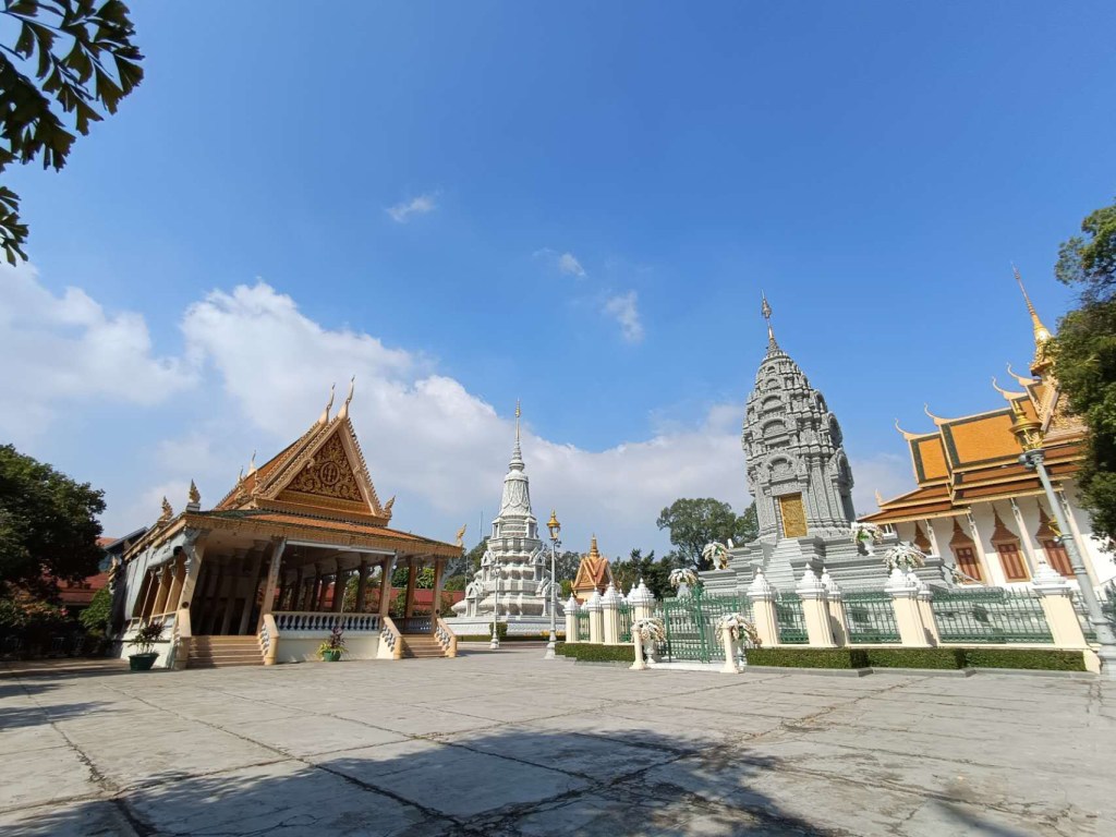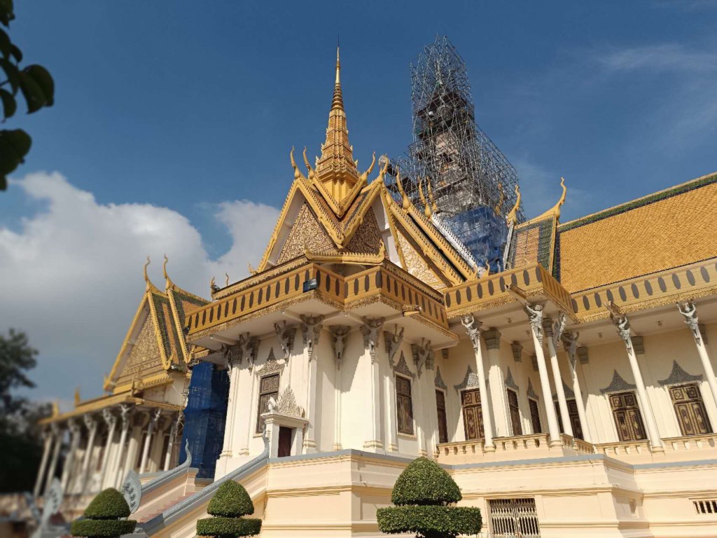 I arranged with the tuk tuk driver who picked me up from the airport to show me some sights in the city in the AM of my one full day in Phnom Penh. I started at the Royal Palace; many of the buildings under construction, I’m guessing since it’s the dry season. It was HOT for being 9am and sweated through my shirt as I tried to capture the architecture. I loved hearing the languages of other foreigners. Many French people, I’m assuming because of their colonization and influence in the 18-19th centuries.