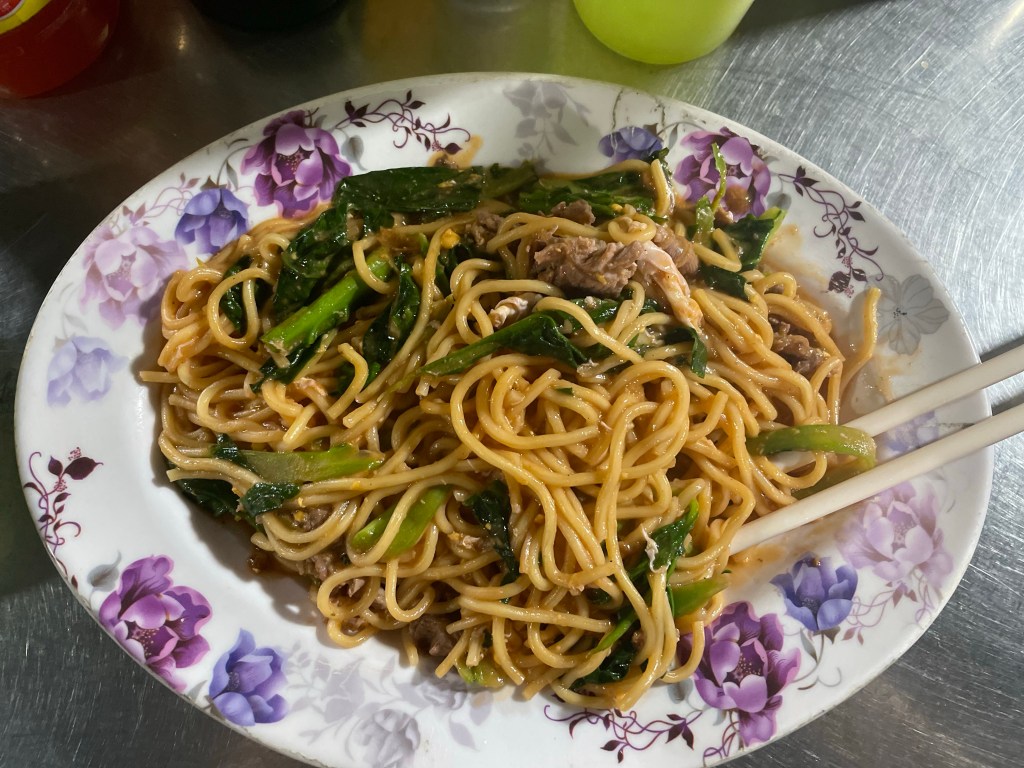 I spent the heat of the afternoon at the rooftop pool of my hotel, cooling off from the heat and resting after a whirlwind of travel. I left Wuhan at 10pm on the 10th and arrived the next day in PP at 10am. Then with seeing sights and whatnot, I had been pretty non-stop making the most of my time in Cambodia’s capital city. I ventured out in the mild evening once again, wandering the side streets in search of Khmer food. Unfortunately to no avail, due to the heavily-influenced Vietnamese and tourist-serving establishments in the area surrounding my hotel. I did find myself at a food cart on a busy street and ordered some fried noodles, Khmer-style, only because I had already had lok lak for lunch and didn’t know what else to order. I should have ordered fried rice as I saw a tuk tuk driver order that not long after I got my meal. They were good, but noodles are not a staple of the cuisine like rice is, and likely only integrated for Chinese tourists, I’m guessing.